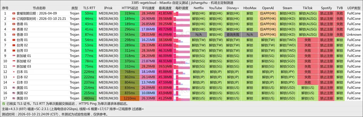 | 🎬 Netflix | ✅ 支持 | 绝大多数节点可正常解锁对应地区内容,HK03 节点解锁异常,建议回避 |