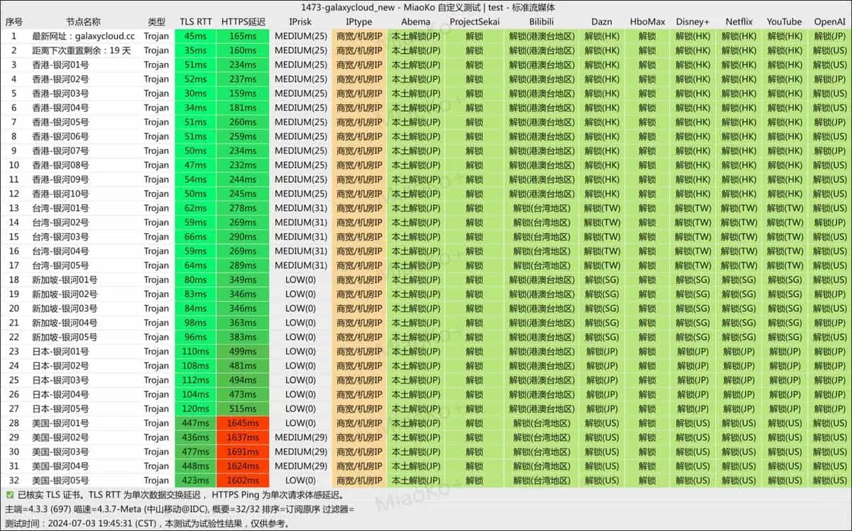 银河云 (Galaxy Cloud) 是一家走“精品路线”的高端机场。它没有追求庞大的节点数量,而是专注于线路质量和用户体验。全线采用 14+ 条深港 IPLC/IEPL 专线,并承诺线路不复用,这意味着带宽冗余非常充足,晚高峰也能跑满千兆。